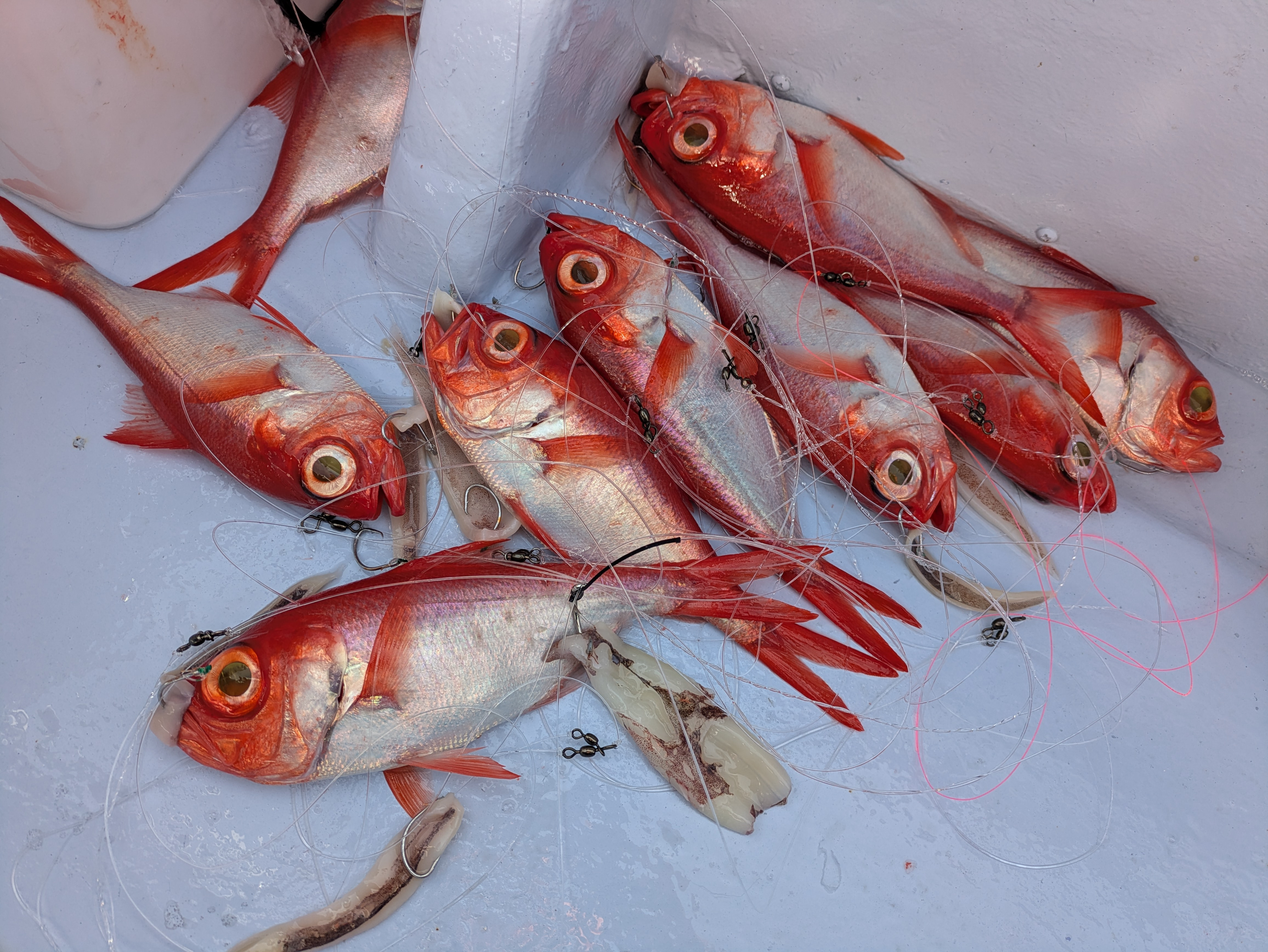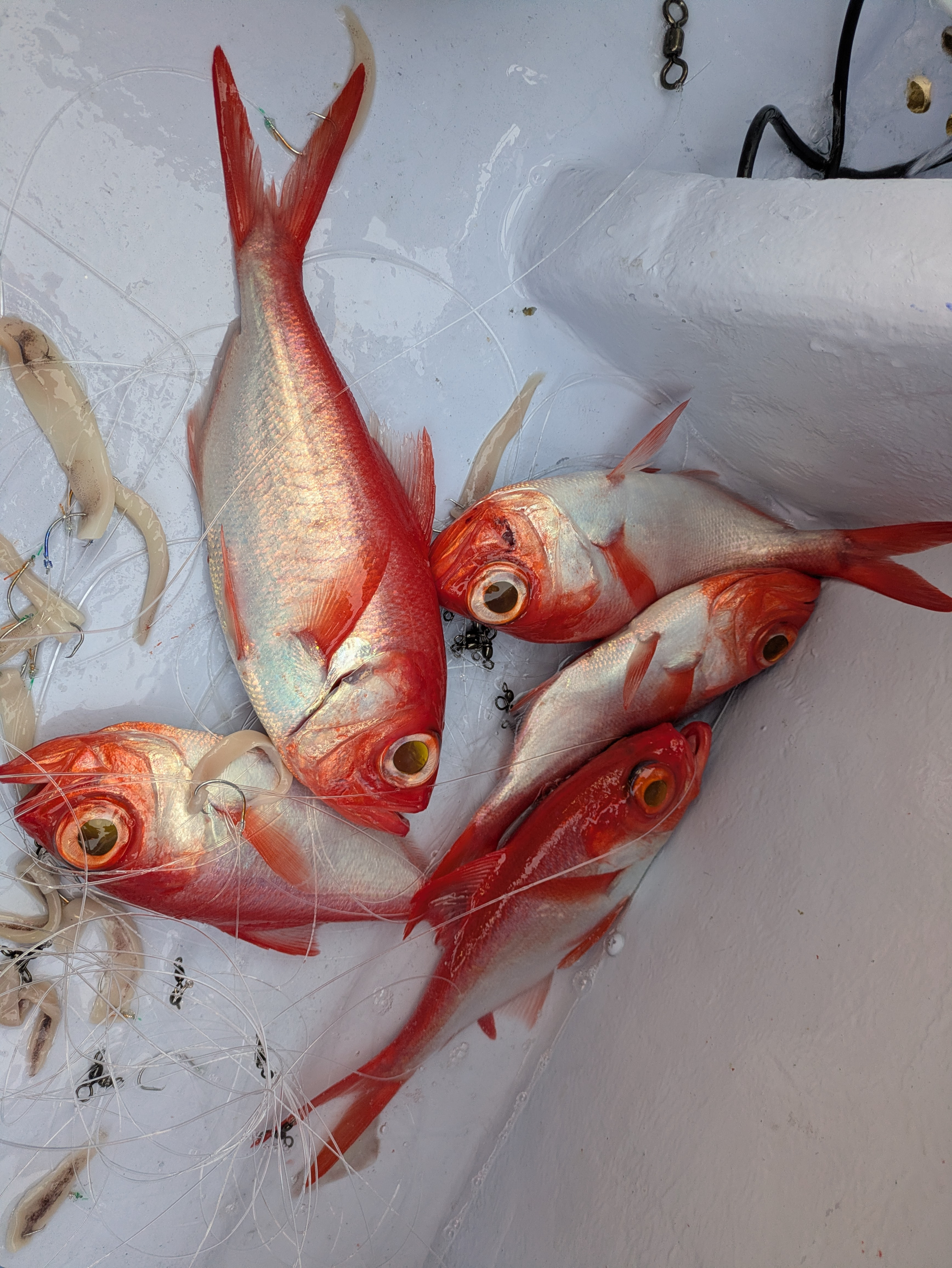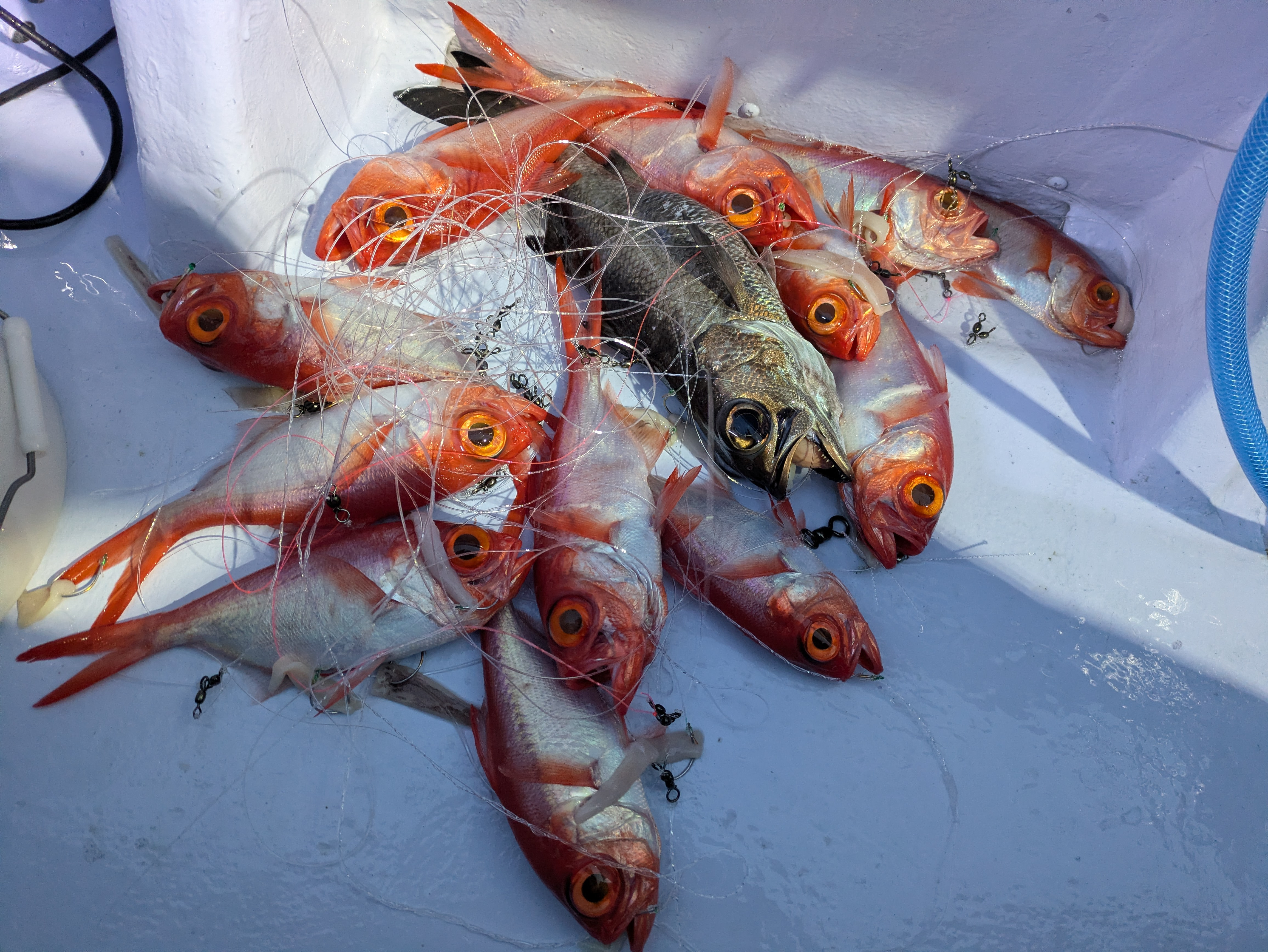 ところが上げてみれば、キンメは小ぶりなサイズ、クロムツは1.5㎏ほどと